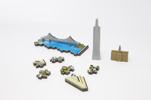A San Francisco 4D Time Puzzle a következőket tartalma: 2D puzzle alapok 1130 darabból, 59 legismertebb emlékmű és épület, Idő Poszter Mini Térképek, 38 plusz általános épület